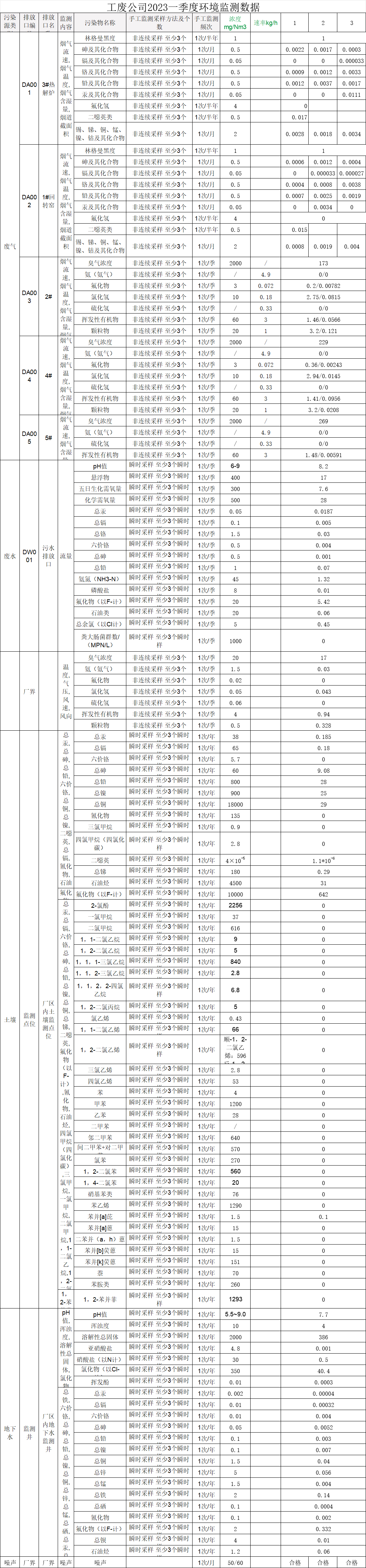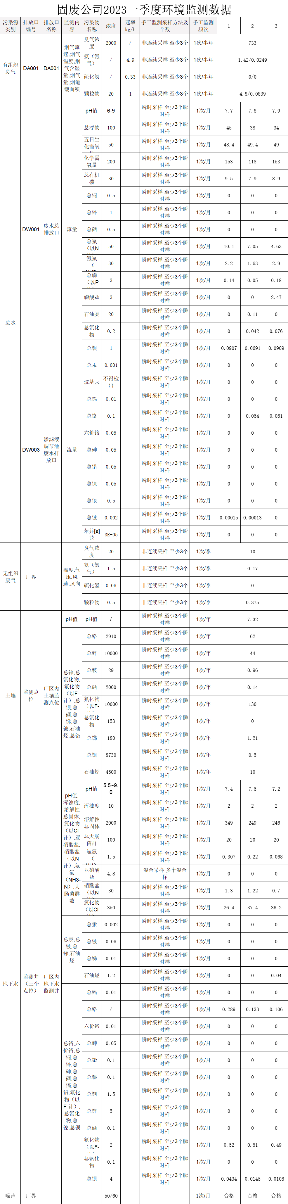 工(gōng)廢(固廢)公司2023年(nián)度1~3季度監測數據公示